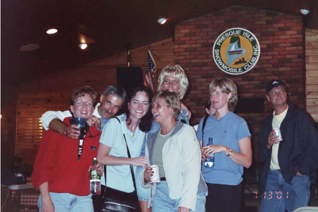Joni Carmichael Buck, Rick Collins, DeeDee Footer, Paula Deschene McHugh, Dianne Carter Collins and Colleen Walton Tracy at the PI Snowmobile Club Friday Night.
