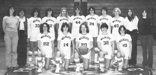 1st Roaw: Leah Lamoreau, Katie Lloyd, Lisa Plummer, Kellie McHugh, and Anna Young. 2nd Row: Debbie Pelchet - Manager, Coach Diane Folsom, Debbie Lennon, Kay Cote, Debbie Bell, Margaret Ames, Robin Desjardins, Kathy Roope, Virginia Brown, Candy Gardiner - Manager, Kathy Schurman - Manager. (Absent: Shelly Allen - Manager)